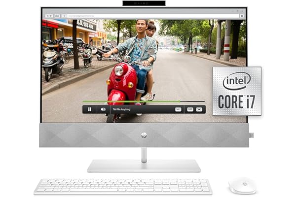 cheap desktop computers for gaming - #1:HP 27 Pavilion All-in-One PC, 10th Gen Intel i7-10700T Processor, 16 GB RAM, Dual Storage 512 GB SSD and 1TB HDD, Full HD IPS 27 Inch Touchscreen, Windows 10 Home, Keyboard and Mouse (27-d0072, 2020)